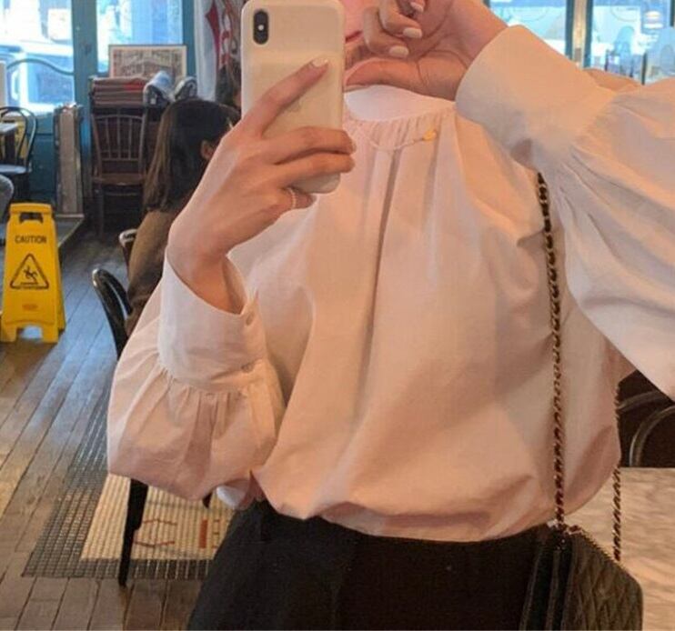 半ハイネック 長袖 シャツブラウス レディース トップス シャツ ブラウス プルオーバー 丈長 襟付き スタンドカラー フェミニン 綿 かわいい 大人可愛い きれいめ シンプル カジュアル 上品 おしゃれ レトロ こなれ感 無地 春 秋 冬 ママ 通勤 学生 学校 通学 デート お出かけ 旅行 公園 女子会 休日 ショッピング お花見 カフェ 重ね着 韓国 体型カバー 普段使い 着回し S M L ゆったり 白 ホワイト