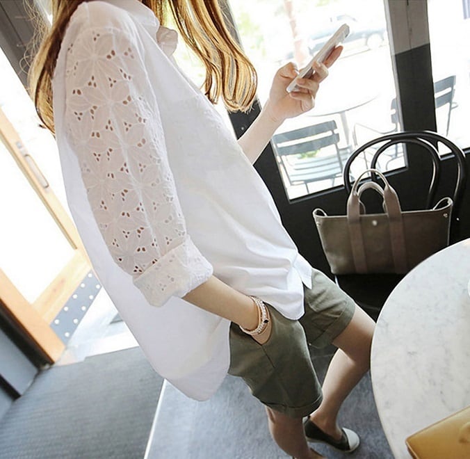 パンチングレース 長袖 シャツ ブラウス レディース トップス 丈長 襟付き 角襟 ポロカラー レース ポケット 前開き ボタン 綿 かわいい 大人可愛い きれいめ シンプル カジュアル 上品 おしゃれ レトロ こなれ感 花柄 フラワー 春 夏 秋 ママ 通勤 学生 学校 通学 デート お出かけ 旅行 公園 女子会 休日 ショッピング お花見 カフェ 重ね着 体型カバー 普段使い 着回し レイヤード S M L XL 2XL 3XL 4XL 5XL 大きいサイズ ゆったり 白 ホワイト