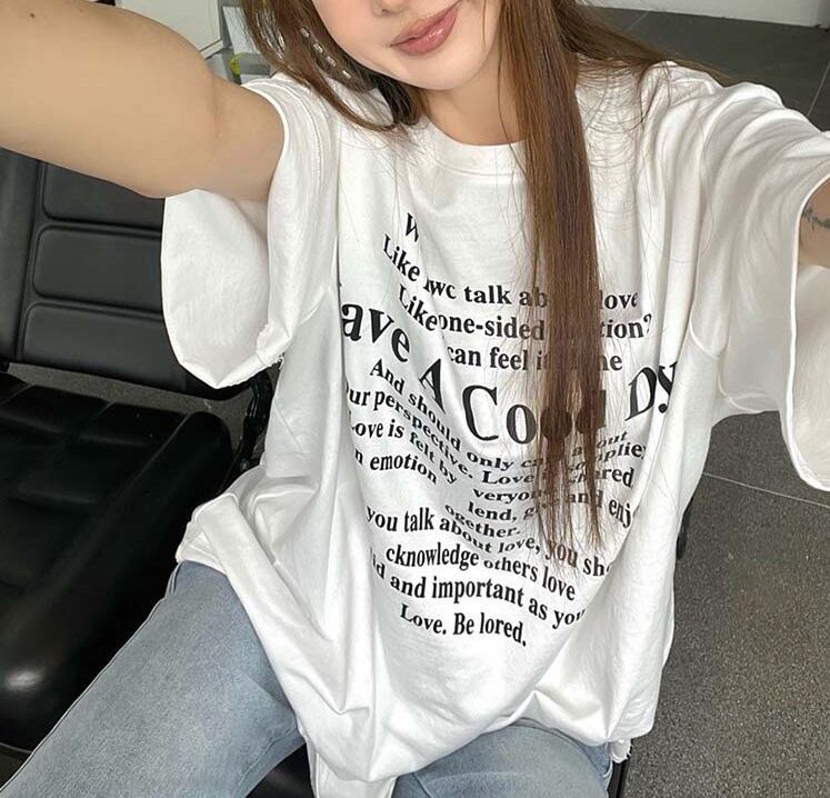レター プリント ルーズ 半袖 Tシャツ レディース トップス カットソー プルオーバー インナー 丈長 ラウンドネック 襟なし オーバーサイズ バイカラー かわいい 大人可愛い シンプル カジュアル おしゃれ こなれ感 ルーズ 存在感 英字 春 夏 秋 ママ 通勤 学生 学校 通学 デート お出かけ 旅行 公園 女子会 休日 ショッピング お花見 カフェ モノトーン 重ね着 体型カバー 普段使い 着回し ゆったり ゆる フリーサイズ 白 ホワイト 黒 ブラック