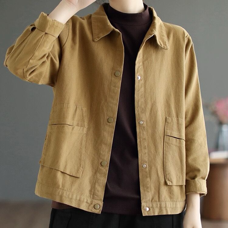 レディース トップス ジャケット シャツ 上着 長袖 襟付き ポロカラー ストレート ポケット 前開き ボタン ヴィンテージ アメカジ シンプル カジュアル おしゃれ かっこいい レトロ こなれ感 メンズライク ボーイッシュ ルーズ クラシカル ベーシック アメリカン 無地 春 秋 冬 学生 お出かけ アウトドア キャンプ 公園 休日 ショッピング 韓国 コーデ 普段使い 着回し ロールアップ M L XL 2XL 大きいサイズ 黒 ブラック 茶色 ブラウン オレンジ ミリタリー 緑 グリーン 秋カラー