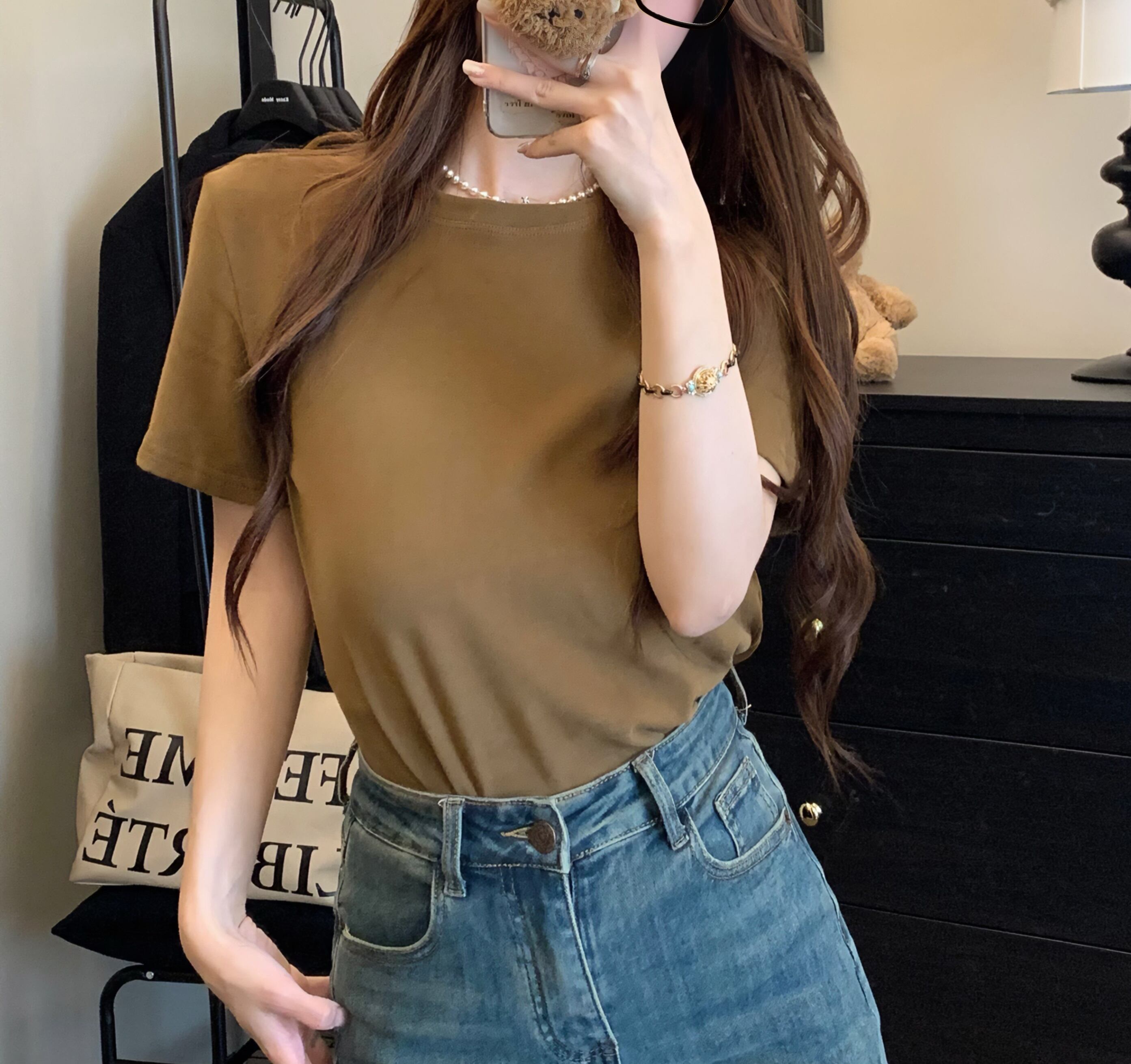 ラウンドネック 半袖 Tシャツ レディース トップス カットソー プルオーバー 部屋着 インナー 襟なし かわいい 大人可愛い きれいめ シンプル カジュアル おしゃれ こなれ感 ベーシック 無地 春 夏 秋 ママ 通勤 学生 学校 通学 デート お出かけ 旅行 公園 女子会 休日 ショッピング お花見 カフェ 重ね着 普段使い 着回し レイヤード フリーサイズ 黒 ブラック 茶色 ブラウン グレー ピンク アーミーグリーン クリームイエロー