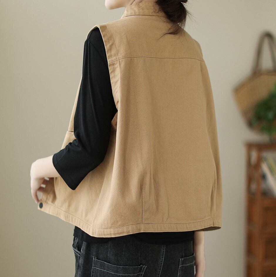 レディース ジャケット ベスト ノースリーブ スタンドカラー ポケット ボタン 大人可愛い きれいめ シンプル カジュアル おしゃれ かっこいい レトロ ラフ クール 都会的 ナチュラル 無地 秋 通勤 デート お出かけ お泊まり アウトドア イベント 旅行 レストラン 公園 女子会 休日 高原 ガーデン ショッピング カフェ 韓国 コーデ 楽ちん プレゼント 普段使い 着回し 清楚 定番 M L XL 2XL 大きいサイズ ブラック ブラウン カーキ
