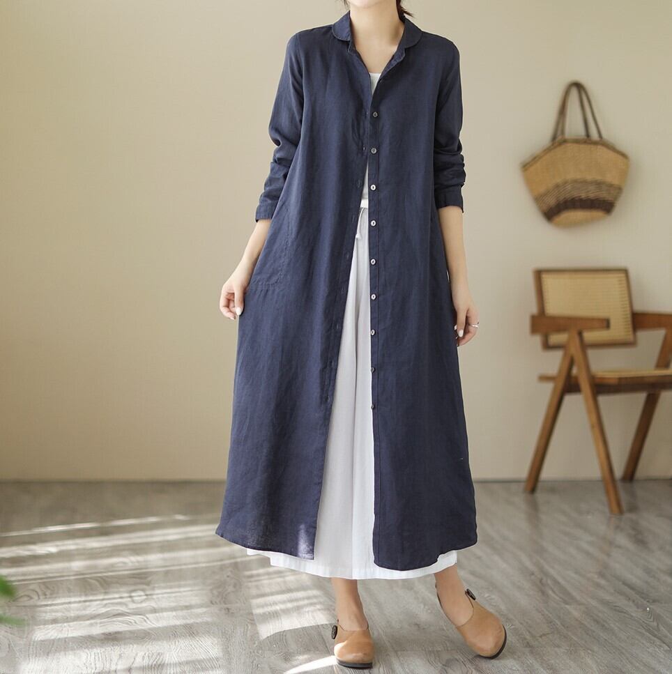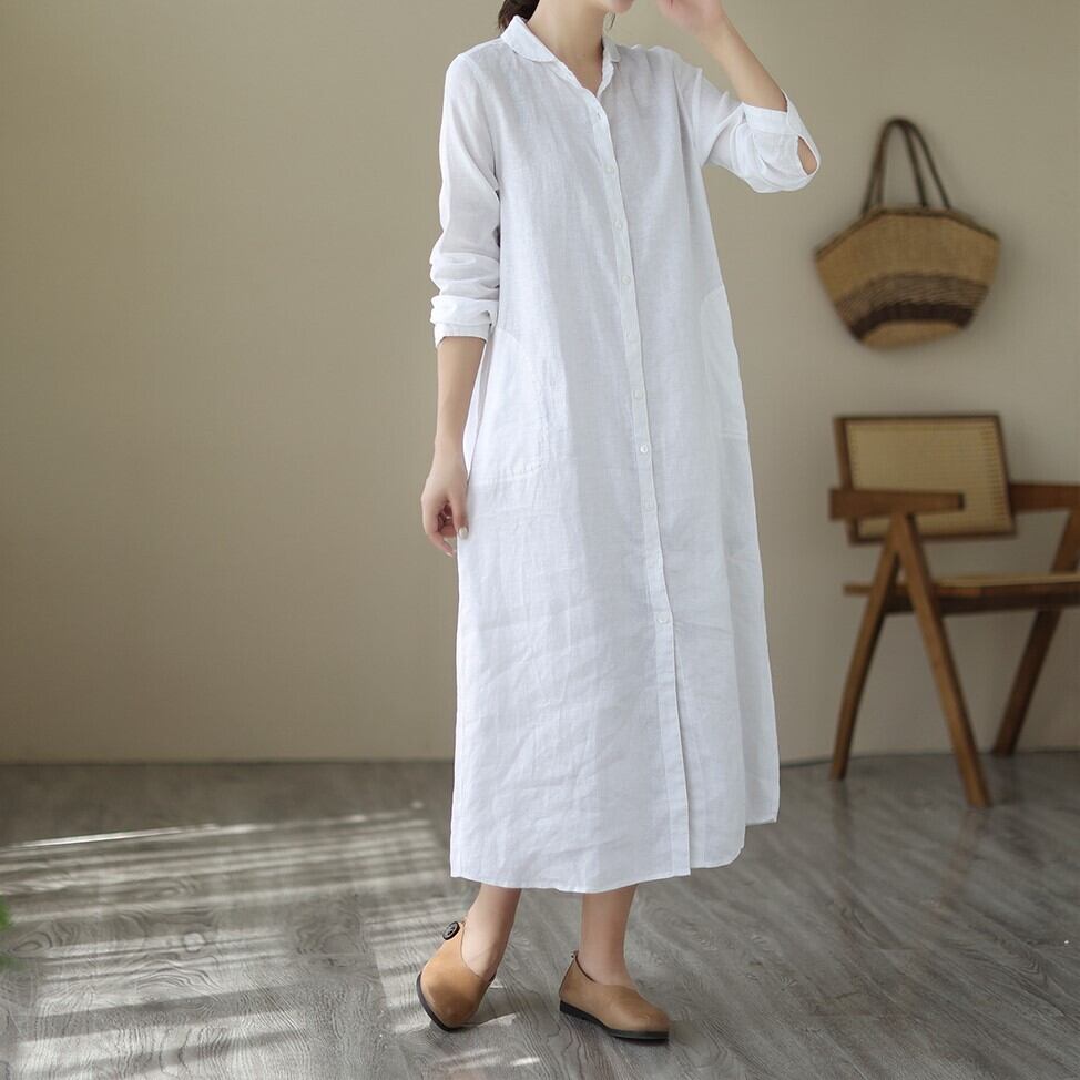 レディース ワンピース シャツワンピ ミモレ 長袖 襟付き ポロカラー Aライン ボタン 大人可愛い きれいめ シンプル カジュアル おしゃれ かっこいい ラフ クール 都会的 ナチュラル 無地 秋 通勤 デート お出かけ お泊まり 旅行 レストラン 公園 女子会 休日 ホテル ショッピング カフェ お揃い 韓国 コーデ 楽ちん プレゼント 体型カバー 普段使い 着回し 清楚 定番 M L XL 2XL 大きいサイズ ゆったり ホワイト ネイビー