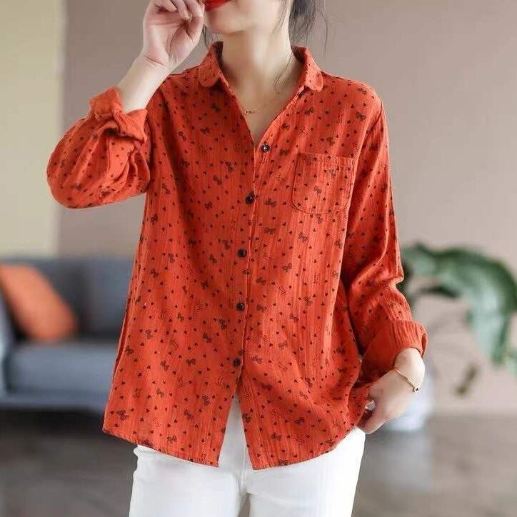 レディース トップス シャツ 長袖 ラウンドネック 襟付き リボン 前開き ボタン リネン コットン かわいい 大人可愛い カジュアル おしゃれ レトロ こなれ感 ラフ ガーリー ルーズ 個性的 存在感 クラシカル アクティブ 総柄 春 授業参観 ママ 通勤 デート お出かけ アウトドア レストラン 女子会 休日 ショッピング コンサート ライブ カフェ 重ね着 お揃い 双子 普段使い 着回し レイヤード インスタ映え M L XL 2XL 大きいサイズ ビッグ 白 ホワイト オレンジ ネイビー