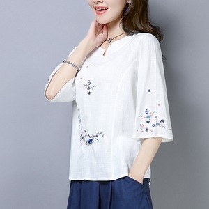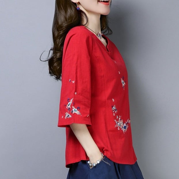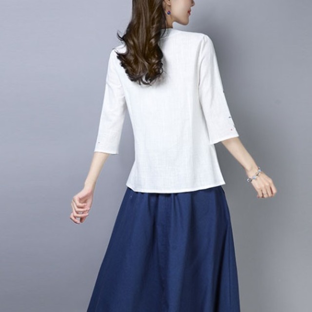 レディース トップス シャツ 7分袖 チャイナ Vネック 襟なし タイト スリム 細身 刺繍 かわいい 大人可愛い きれいめ カジュアル 上品 おしゃれ レトロ アジアン エスニック エキゾチック 個性的 エレガント モダン 主役級 存在感 フォーマル クラシカル ナチュラル 花柄 フラワー 夏 授業参観 ママ 通勤 お出かけ レストラン 女子会 休日 ホテル ショッピング カフェ 楽ちん 体型カバー 普段使い 着回し 清楚 インスタ映え M L XL 2XL 白 ホワイト ブルー レッド ネイビー