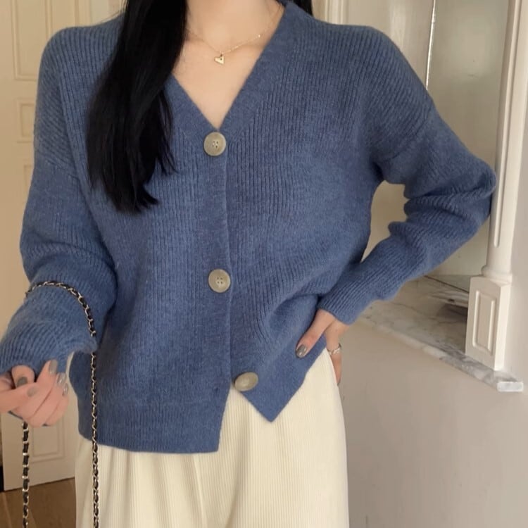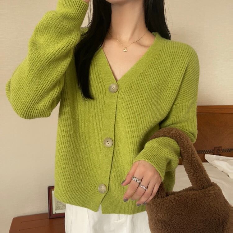 定番カラーとこなれ感のあるカラーがオシャレなリブニットカーディガン。