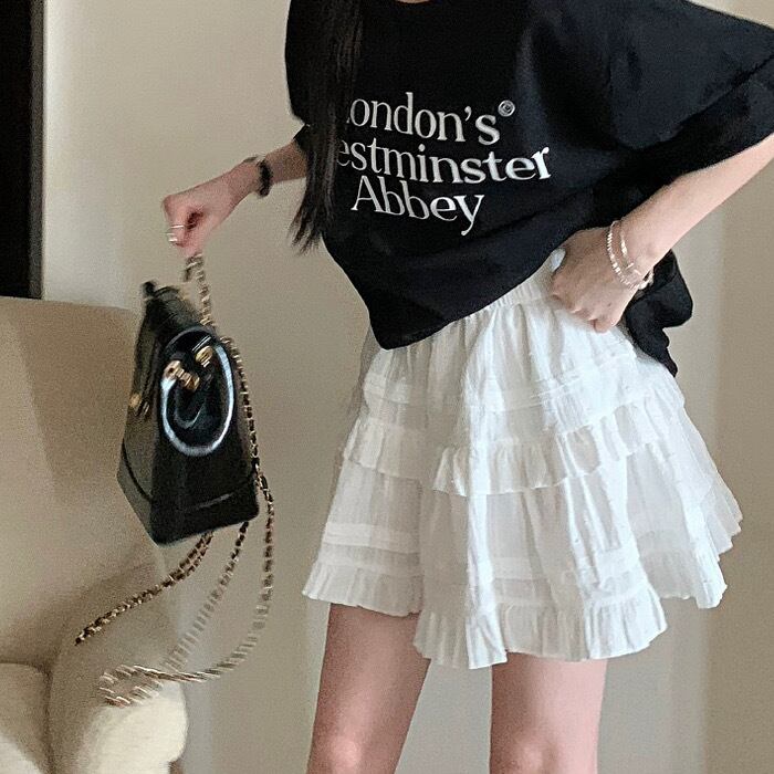 フリルとプリーツが可愛らしいティアードフレアスカート。