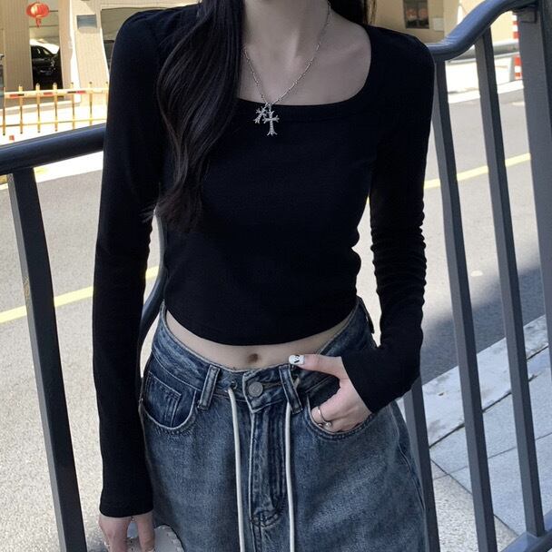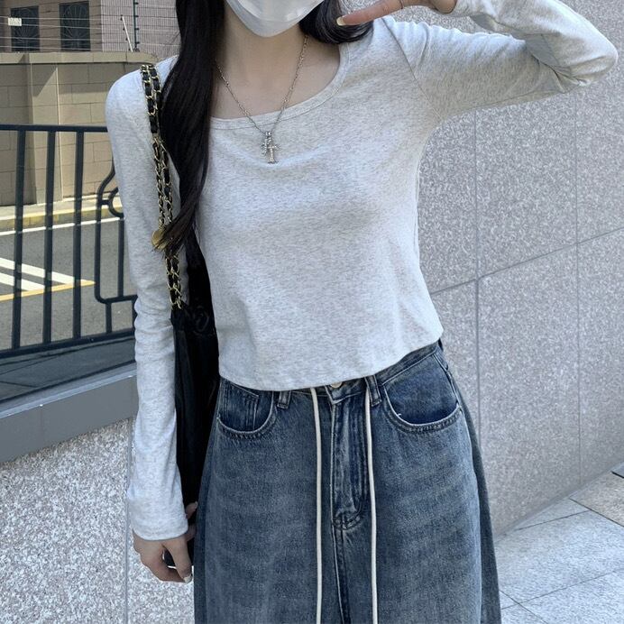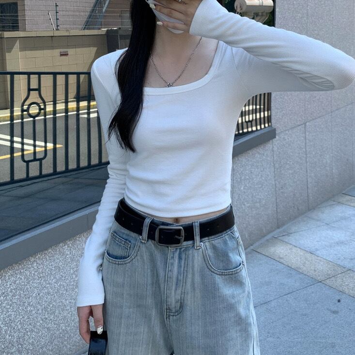 レディース トップス ロンT カットソー クロップド丈 長袖 スクエアネック タイト スリム 細身 ストレート ストリート 伸縮性 アメカジ 薄手 大人可愛い きれいめ シンプル カジュアル おしゃれ かっこいい こなれ感 ラフ メンズライク スポーティー クール ベーシック アメリカン アクティブ 無地 春 秋 冬 学生 学校 デート お出かけ アウトドア 公園 休日 ショッピング 重ね着 韓国 オルチャン コーデ 普段使い 着回し 定番 サイズ S M L 白 ホワイト 黒 ブラック ライトグレー