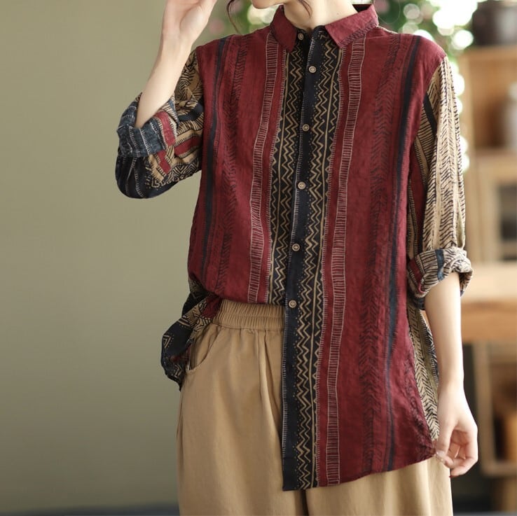 レディース トップス シャツ 長袖 襟付き ポロカラー ボタン リネン 大人可愛い きれいめ シンプル おしゃれ かっこいい レトロ ラフ ルーズ クール フォーマル 都会的 ナチュラル ストライプ 春 夏 通勤 デート お出かけ お泊まり イベント 旅行 レストラン 公園 女子会 休日 ショッピング コンサート ライブ カフェ 韓国 コーデ 楽ちん プレゼント 普段使い 清楚 インスタ映え 定番 M L XL 2XL 大きいサイズ ブラウン レッド
