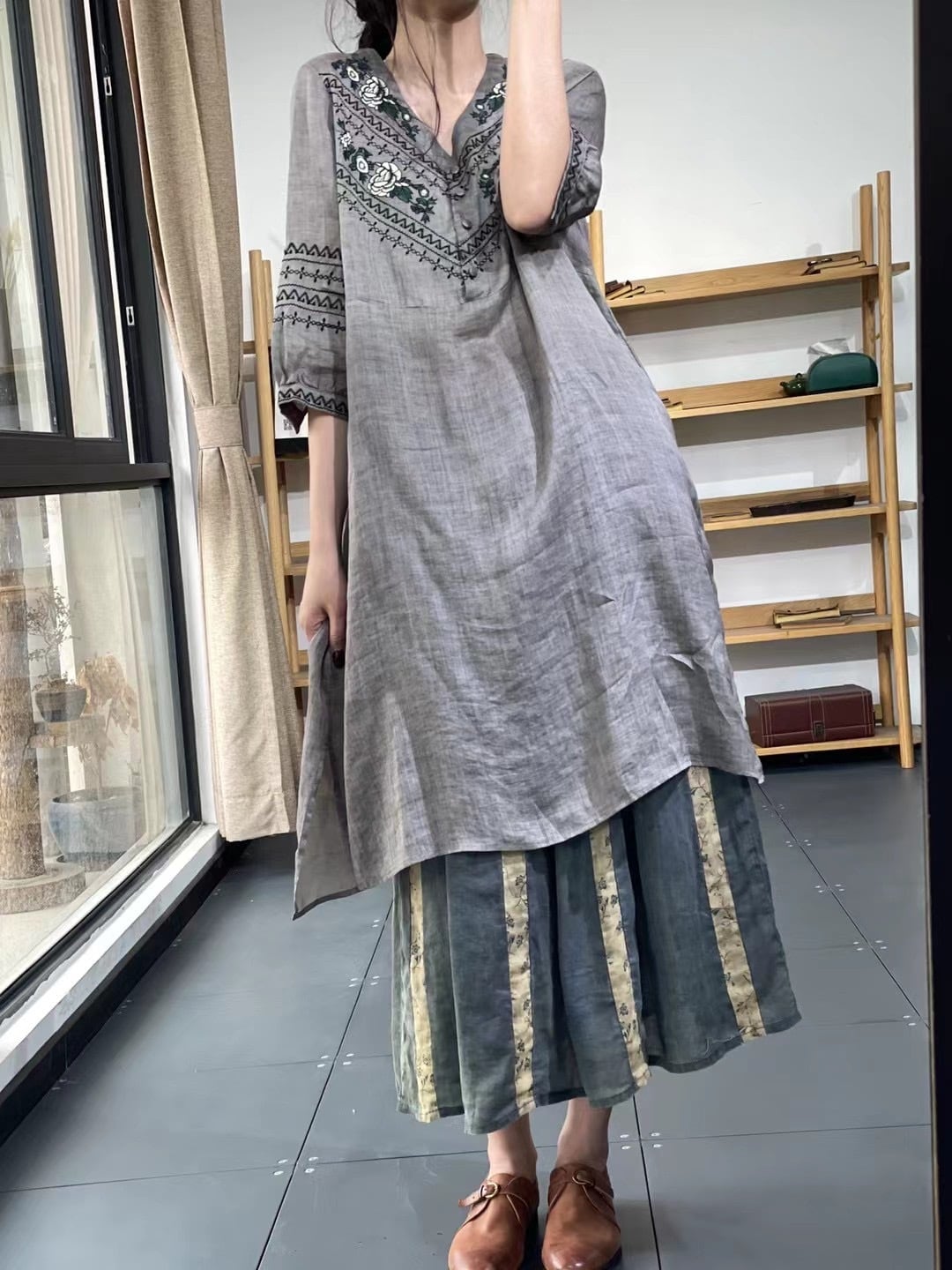 Aラインのシルエットが美しいレディースワンピース。Vネックと刺繍デザインが大人可愛い印象を与えます。ミモレ丈は春夏の季節にぴったりで、カジュアルからきれいめまで幅広いスタイルに合わせやすいです。ボタンでアレンジも可能で、おしゃれなポイントに。さらに、多彩なシーンに対応可能なデザインとカラーバリエーションも嬉しいポイント。洗練された都会的な女性にぴったりの一着です。