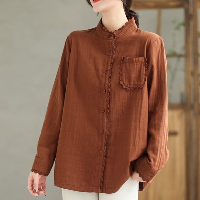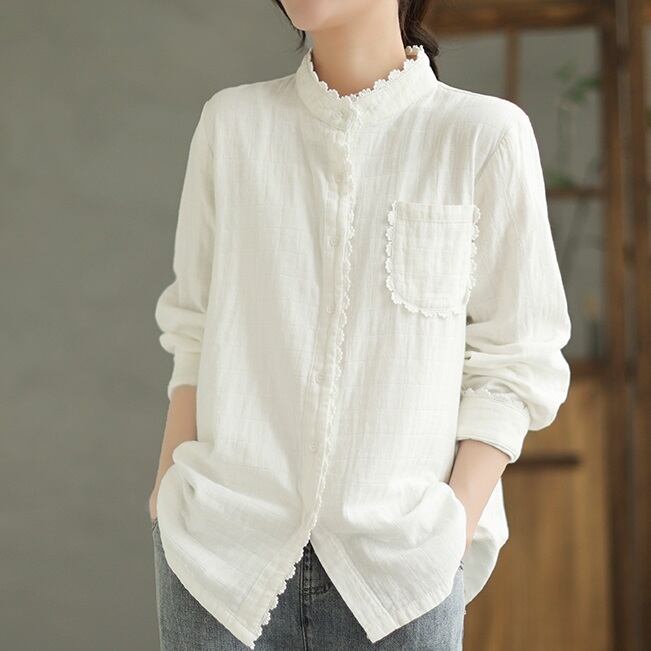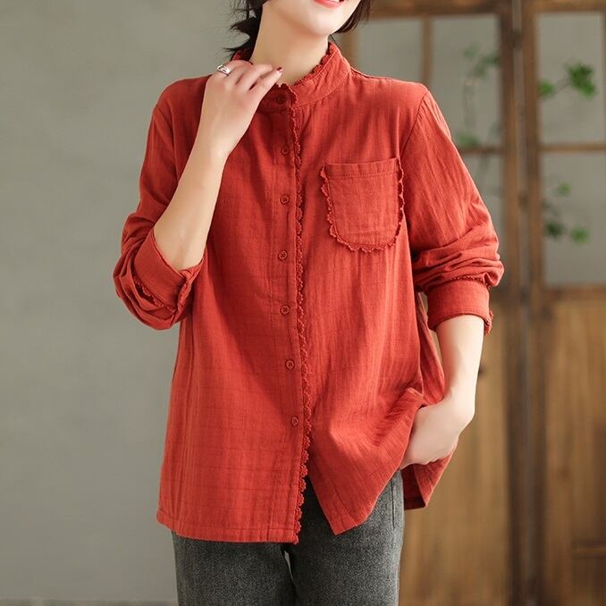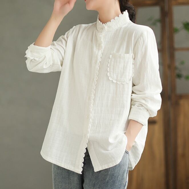 レディース トップス シャツ 長袖 ハイネック 襟付き スタンドカラー フェミニン フリル ポケット 前開き 透け感 薄手 綿 麻 かわいい 大人可愛い きれいめ シンプル カジュアル 上品 レトロ こなれ感 ラフ ルーズ 個性的 抜け感 ベーシック ナチュラル 無地 夏 授業参観 ママ 通勤 デート お出かけ アウトドア レストラン 女子会 休日 ショッピング カフェ コーデ 楽ちん 普段使い 着回し 清楚 M L XL 2XL ゆったり ゆる 白 ホワイト 黒 ブラック カーキ オレンジ 大人カラー
