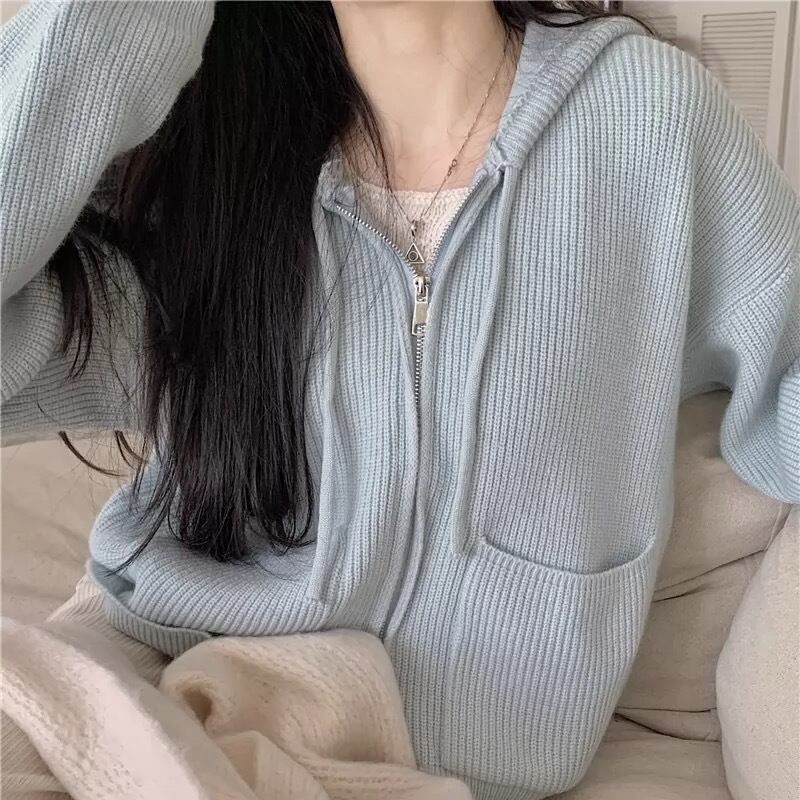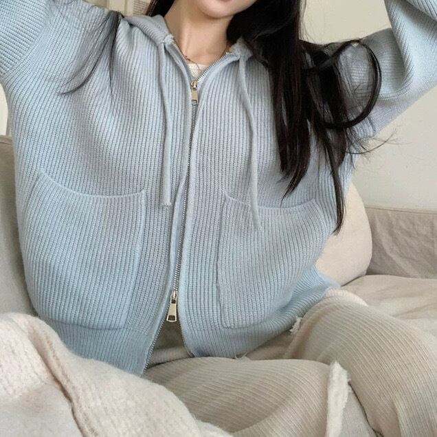 レディース トップス ニット セーター パーカー 上着 羽織 前開き フード フェミニン ファスナー ポケット リブ 伸縮性 ウール かわいい 大人可愛い シンプル カジュアル おしゃれ こなれ感 ラフ ガーリー ルーズ キュート 無地 秋 冬 ママ 学生 学校 通学 デート お出かけ 公園 女子会 休日 ショッピング 韓国 オルチャン コーデ 楽ちん 暖かい 普段使い 着回し モテ 定番 M L XL 2XL 3XL 4XL 大きいサイズ ゆったり ゆる ピンク 水色 ブルー パステル アプリコット