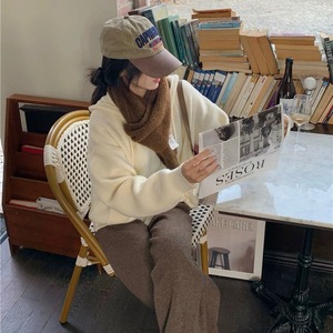 大人可愛いフェミニンな雰囲気漂う、リブニットパーカー。