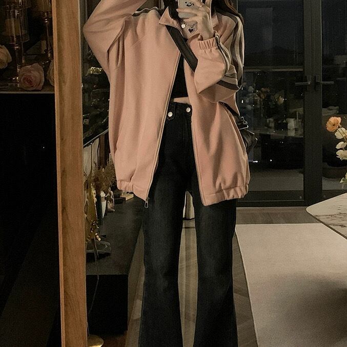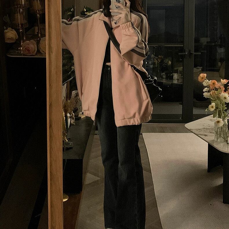 レディース トップス トラックジャケット ジャージ 上着 羽織 前開き 長袖 萌袖 スタンドカラー コクーン ストリート ファスナー ポケット 配色 カジュアル おしゃれ こなれ感 ラフ メンズライク スポーティー ルーズ 無地 春 秋 冬 学生 学校 通学 デート お出かけ アウトドア 公園 休日 ショッピング ライブ フェス 韓国 オルチャン コーデ 楽ちん 普段使い 着回し トレンド 流行 サイズ S M L XL 2XL 3XL 大きいサイズ ゆったり ゆる 黒 ブラック ベージュグレー ピンク