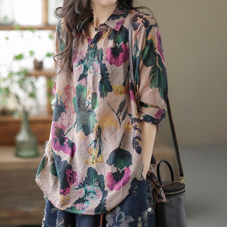 レディース トップス シャツ 長袖 襟付き ポロカラー ボタン リネン 大人可愛い きれいめ シンプル おしゃれ かっこいい レトロ ラフ ガーリー ルーズ クール 都会的 ナチュラル 花柄 秋 通勤 デート お出かけ お泊まり イベント 旅行 レストラン 公園 女子会 休日 ホテル ショッピング コンサート ライブ カフェ 韓国 コーデ 楽ちん プレゼント 普段使い 着回し インスタ映え M L XL 2XL 大きいサイズ ピンク グリーン