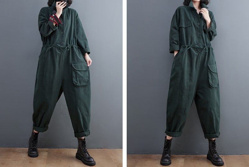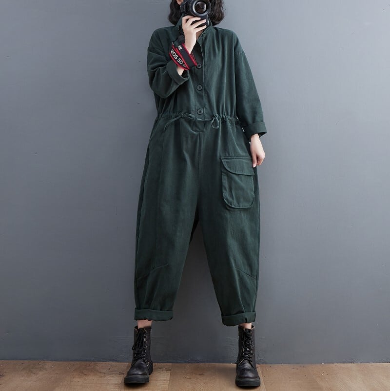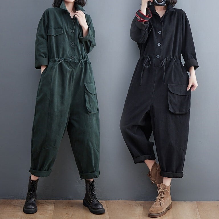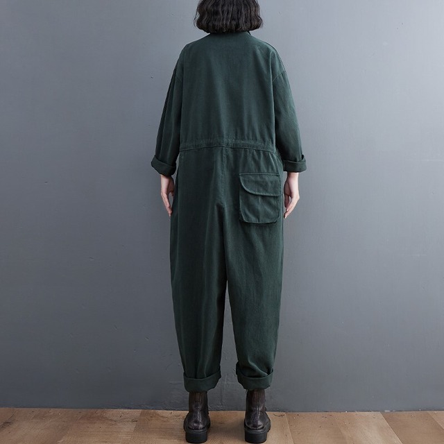 レディース サロペット オーバーオール オールインワン つなぎ 長袖 襟付き ポケット ハイウエスト ボタン 大人可愛い きれいめ シンプル カジュアル おしゃれ かっこいい レトロ ラフ ルーズ クール ナチュラル 無地 秋 通勤 お出かけ お泊まり アウトドア キャンプ 旅行 公園 女子会 休日 高原 ガーデン ショッピング お揃い 韓国 コーデ 楽ちん 脚長 着回し 清楚 インスタ映え 定番 L XL 2XL 大きいサイズ ブラック ブラウン グリーン