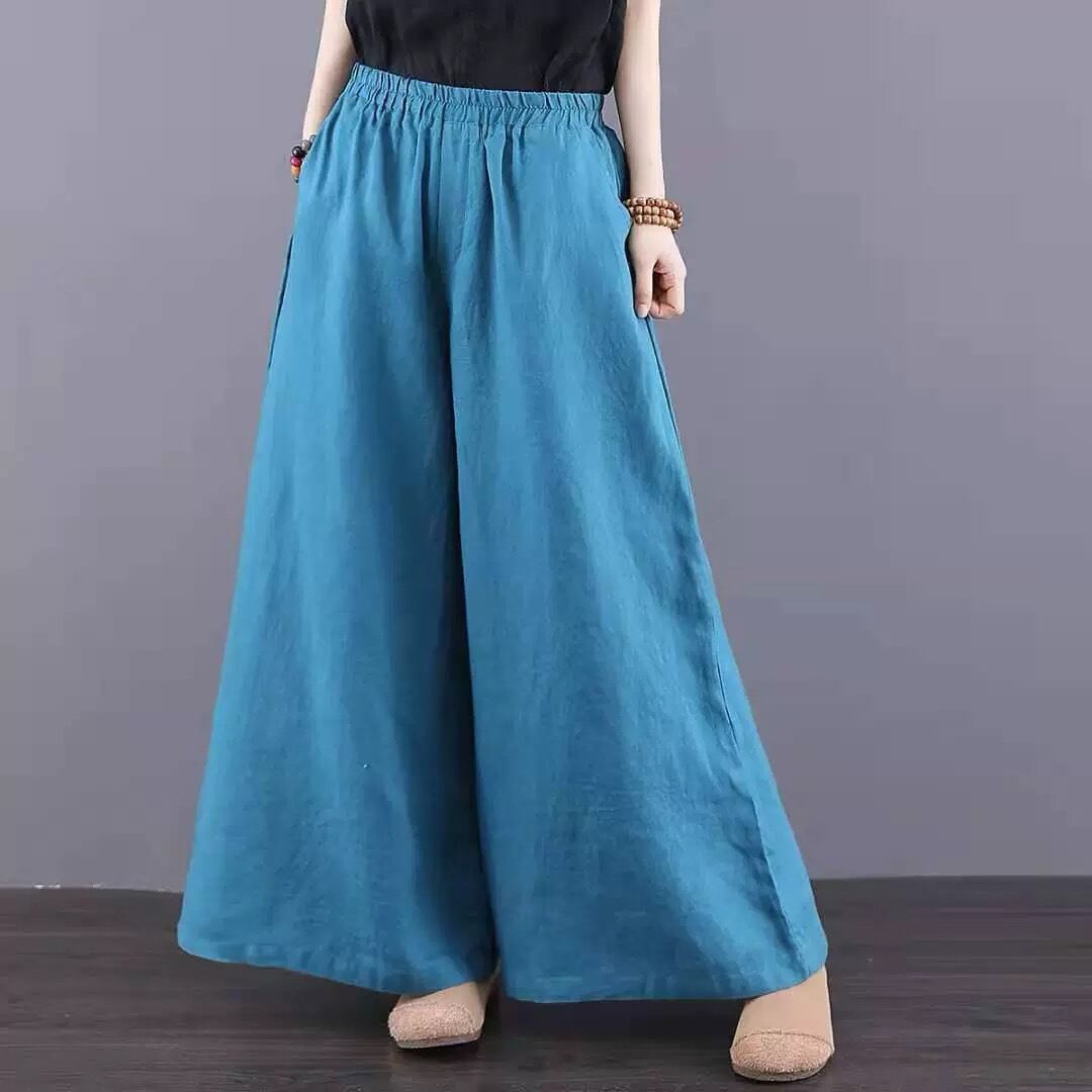 レディース パンツ ボトムス ワイドパンツ ロング 丈長 フルレングス ワイド フレア Aライン 裾ワイド ウエストゴム 薄手 リネン 大人可愛い シンプル カジュアル おしゃれ レトロ アジアン エスニック こなれ感 ラフ ルーズ 抜け感 ナチュラル 無地 春 夏 秋 ママ デート お出かけ リゾート 旅行 公園 休日 ショッピング カフェ 韓国 コーデ 楽ちん 体型カバー 普段使い 着回し M L XL 2XL 3XL 大きいサイズ ゆったり ゆる 麻 ブルー ホワイト 白 ピンク イエロー ネイビー