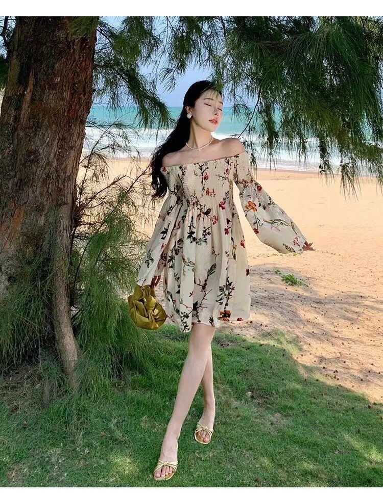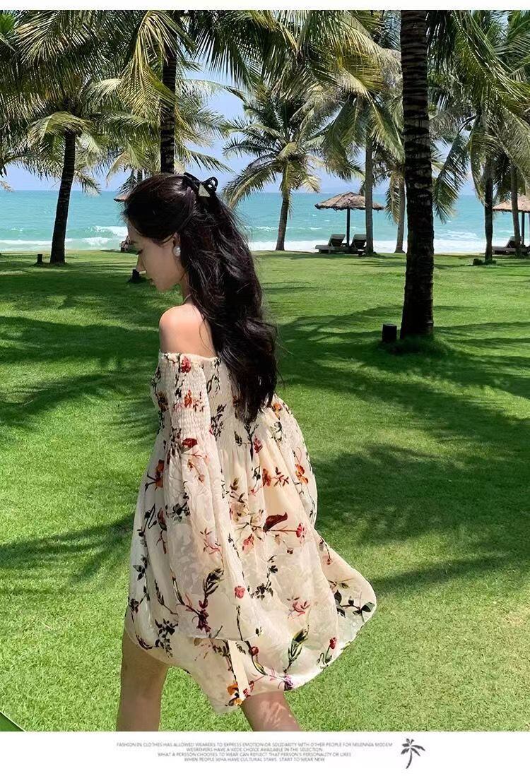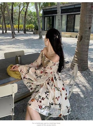 ボリューム袖が可愛いポイントのミニワンピース!袖はゆったりとしたデザインで、女性らしいシルエットを演出してくれます。さらに、オフショルダーとAラインの組み合わせが、抜け感と華やかさをプラス。花柄のディテールが、春夏のお出かけやパーティーにぴったりのアイテムです。