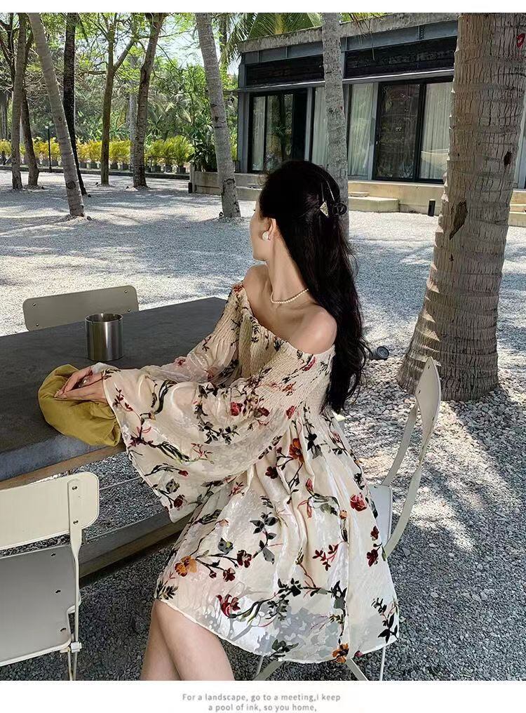 レディース ワンピース ミニスカート ミニ ショート 長袖 ボリューム袖 袖ゆったり オフショルダー Aライン ハイウエスト シャーリング かわいい 大人可愛い きれいめ ガーリー ルーズ ラブリー キュート ふんわり 花柄 フラワー 春 夏 秋 デート お出かけ パーティー イベント コーデ 楽ちん モテ インスタ映え 定番 S M L アイボリー