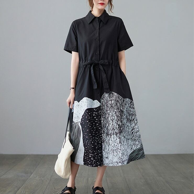 レディース ワンピース シャツワンピ ミモレ 7分丈 8分丈 半袖 襟付き ポロカラー Aライン リボン ベルト ウエストマーク ウエストリボン ハイウエスト 前開き かわいい 大人可愛い カジュアル 上品 おしゃれ レトロ こなれ感 ラフ 個性的 モダン 主役級 存在感 夏 授業参観 ママ オフィス ビジネス 通勤 お出かけ 旅行 レストラン 公園 女子会 休日 ショッピング モノトーン コーデ 楽ちん 体型カバー 脚長 普段使い L XL 2XL 大きいサイズ ビッグ ゆったり ゆる 黒 ブラック
