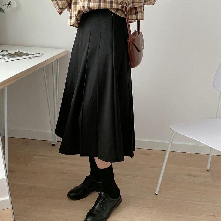 レディース スカート ボトムス タックスカート 膝下 ミモレ ロング Aライン タックプリーツ サイドジップ ハイウエスト きれいめ シンプル カジュアル 上品 おしゃれ エレガント 学生風 ベーシック きちんと感 無地 春 夏 秋 ロングシーズン 授業参観 会議 ミーティング プレゼン ママ 女の子 オフィス OL 通勤 学生 学校 通学 デート お出かけ 女子会 休日 ショッピング カフェ 韓国 オルチャン コーデ 体型カバー 脚長 普段使い 着回し 清楚 S M L XL 黒 ブラック モノトーン