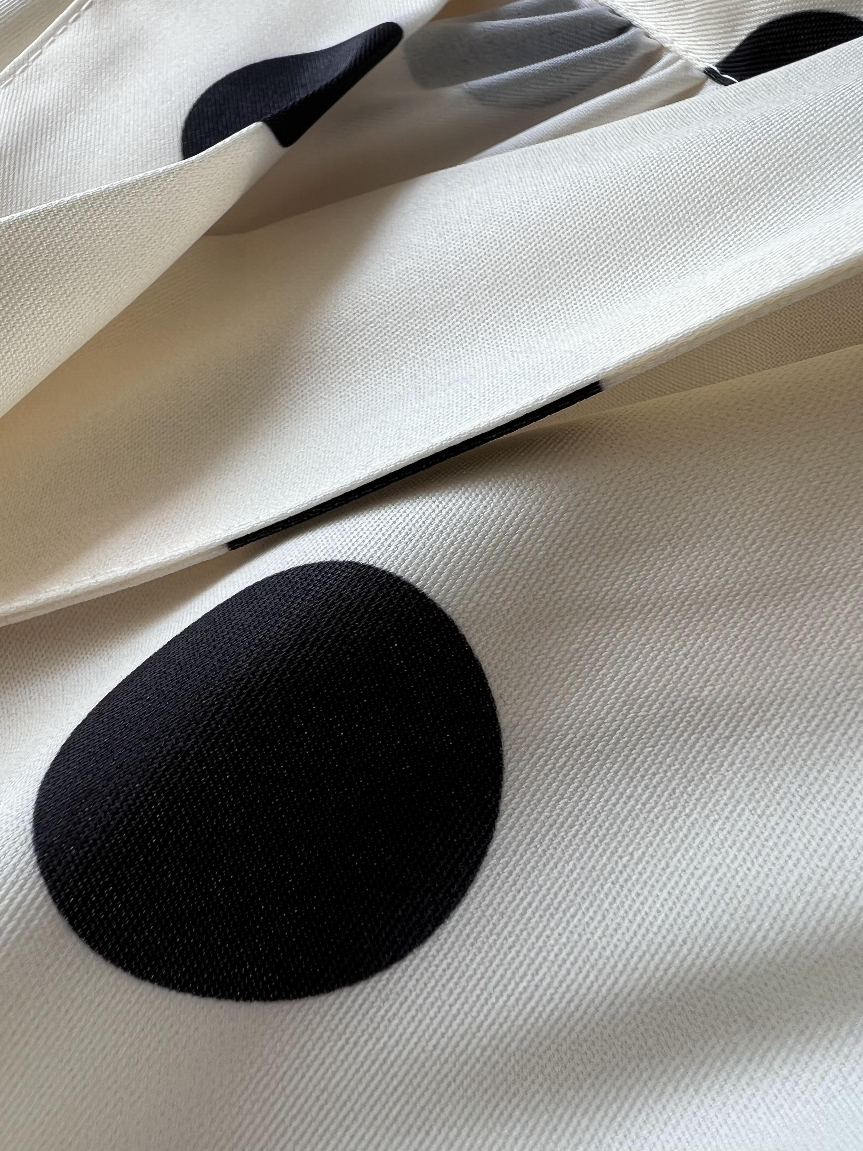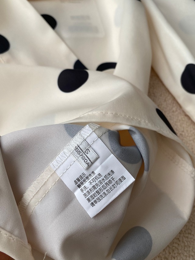 ルーズにならない程度のほどよいゆったり感があり、体型カバーしながらこなれスタイルに。淡いベージュカラーの地色に黒ドットが映え、上品でレトロな着こなしが叶います。