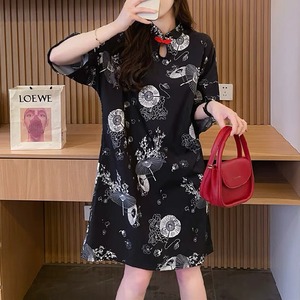 中華風デザインが印象的なチャイナ風Tシャツワンピース。