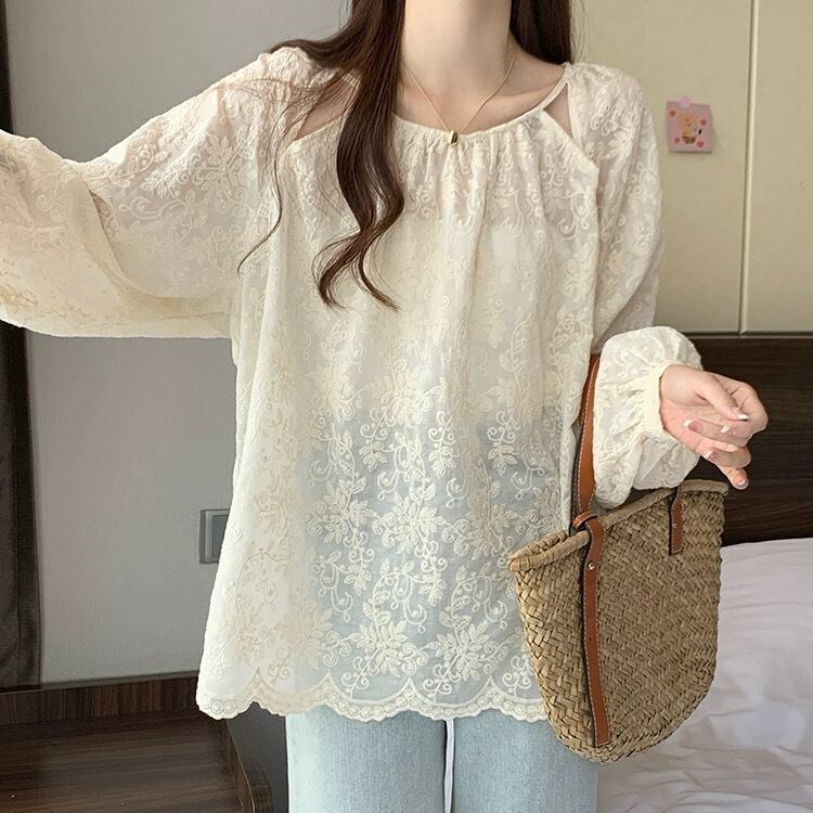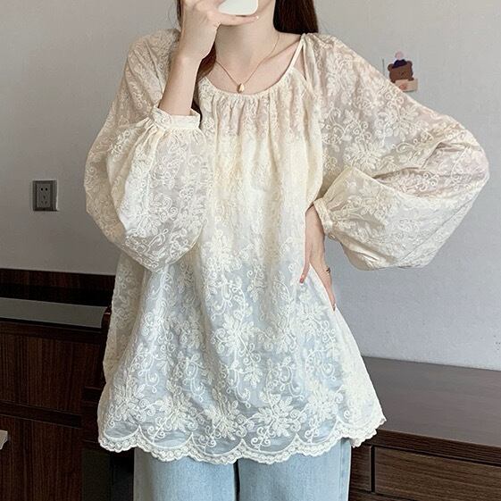 レディース トップス ブラウス プルオーバー チュニック 長袖 バルーン袖 ラウンドネック フェミニン レース 刺繍 シフォン 透け感 シースルー シアー 薄手 ジャガード かわいい 大人可愛い きれいめ おしゃれ ガーリー ルーズ ロマンティック ボタニカル 春 秋 母の日 授業参観 ママ 学生 通学 デート お出かけ 公園 女子会 休日 ガーデン ショッピング カフェ 韓国 オルチャン コーデ 体型カバー 普段使い 着回し M L XL 2XL 3XL 4XL 大きいサイズ ゆったり アプリコット