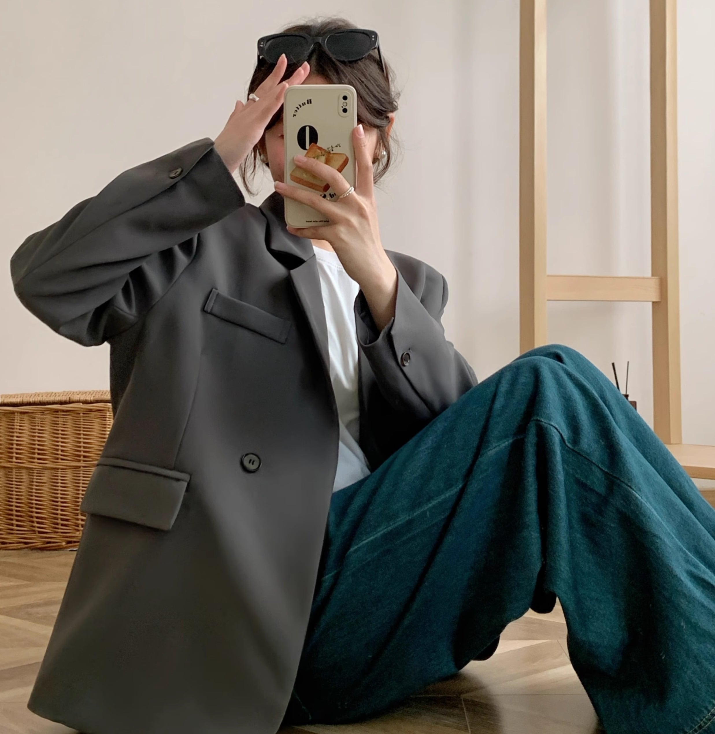 オーバーサイズ テーラードジャケット レディース ジャケット スーツ アウター 上着 羽織 丈長 長袖 Vネック 襟付き 前開き ボタン かわいい 大人可愛い きれいめ シンプル カジュアル 上品 おしゃれ こなれ感 ルーズ 無地 春 秋 冬 授業参観 ママ 通勤 学生 学校 通学 デート お出かけ 旅行 公園 女子会 休日 ショッピング カフェ 重ね着 体型カバー 普段使い 着回し XS S M L 小さいサイズ ゆったり 黒 ブラック グレー