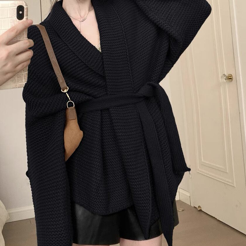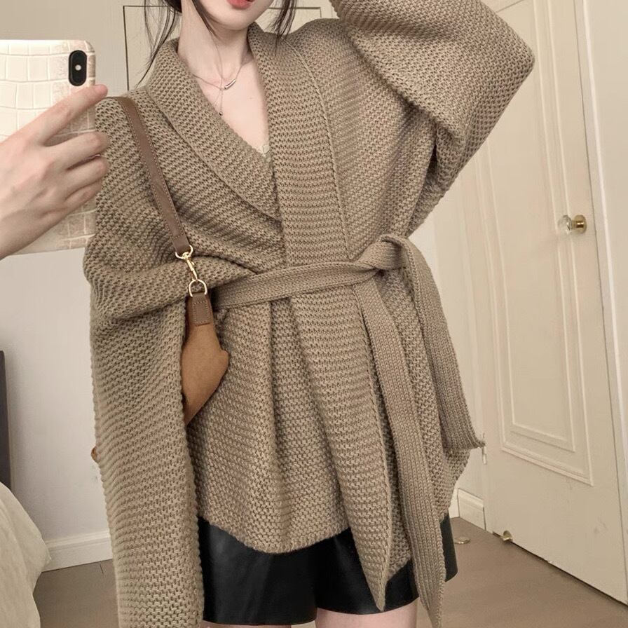 レディース トップス ニット セーター カーディガン コート アウター 上着 羽織 前開き コーディガン 長袖 萌袖 Vネック 襟付き ベルト ウエストマーク ハイウエスト 厚手 大人可愛い きれいめ シンプル カジュアル おしゃれ かっこいい こなれ感 ラフ ルーズ エレガント 抜け感 無地 秋 冬 デート お出かけ 女子会 休日 ショッピング 韓国 オルチャン コーデ 暖かい 体型カバー 普段使い S M L XL 2XL 3XL 4XL 大きいサイズ ゆったり ゆる 黒 ブラック 茶色 ブラウン