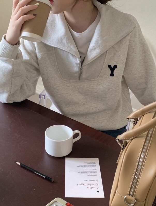 ロゴ刺繍入りの大人可愛い襟付きハーフジップトレーナーが登場しました!スタンドカラーと刺繍デザインがおしゃれさを引き立てる一着です。薄手の素材なので、春先や秋口にぴったり。レイヤードスタイルにも最適で、体型カバーにもなる優れもの。カジュアルからちょっとしたお出かけまで、様々なシーンで活躍してくれること間違いなし!シンプルなデザインなので、着回し力も抜群です。おしゃれを楽しみながら、オシャレ見えも叶える一着です。