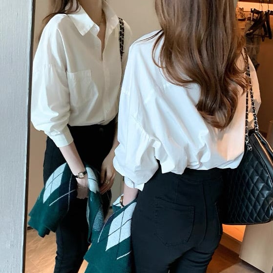 シンプルで品のあるデザインの白シャツ。