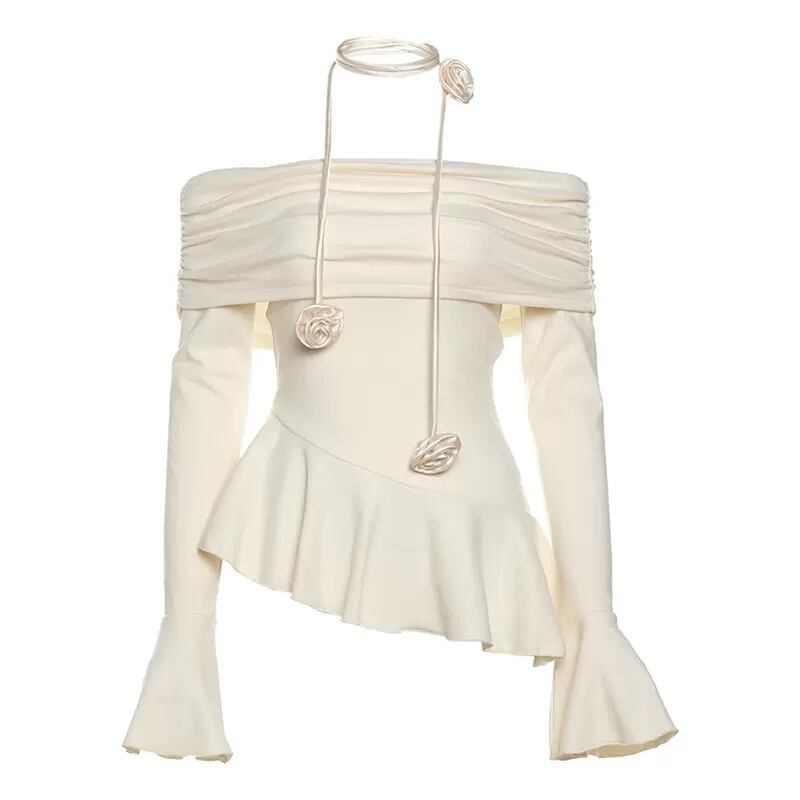 カットソー レディース 長袖 オフショルダー アシンメトリー フリル スリム 細身 きれいめ 上品 おしゃれ お洒落 大人可愛い 大人女子 かっこいい カジュアル 個性的 スタイリッシュ クール セクシー モダン エレガント レトロ 主役級 存在感 こなれ感 抜け感 秋 20代 30代 お出かけ デート 女子会 お泊まり 旅行 ショッピング レストラン 休日 普段使い 韓国 オルチャン 着回し ファッション コーデ トレンド 流行 スタイルアップ スタイル インスタ映え S M L アプリコット ブラック