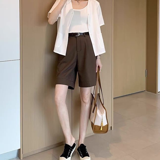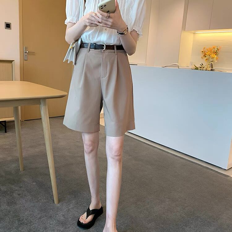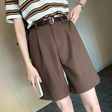 レディース パンツ ボトムス ショートパンツ ワイドパンツ タックパンツ ショート 5分丈 ワイド スリム 細身 Aライン 裾ワイド タック ベルト ウエストマーク ポケット ハイウエスト 大人可愛い きれいめ シンプル カジュアル 上品 おしゃれ かっこいい こなれ感 ラフ メンズライク マニッシュ クラシカル カレッジ風 学生風 ベーシック 無地 春 夏 秋 お出かけ 公園 女子会 休日 ショッピング 韓国 コーデ 普段使い 着回し S M L XL 2XL 黒 ブラック 茶 ブラウン グレー カーキ