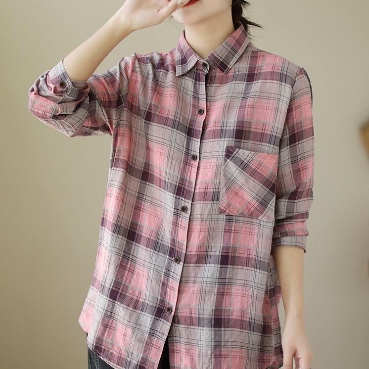 レディース トップス シャツ 長袖 ラウンドネック 襟付き ポロカラー ポケット 前開き ボタン リネン 綿 かわいい 大人可愛い カジュアル おしゃれ レトロ こなれ感 ラフ ルーズ モダン クラシカル チェック 秋 授業参観 ママ 通勤 お出かけ アウトドア キャンプ レストラン 公園 休日 ショッピング カフェ 重ね着 楽ちん デイリー 普段使い 着回し 定番 M L XL 2XL 大きいサイズ ビッグ ゆったり ゆる 黄色 イエロー ピンク 緑 グリーン ベーシックカラー 大人カラー 秋カラー