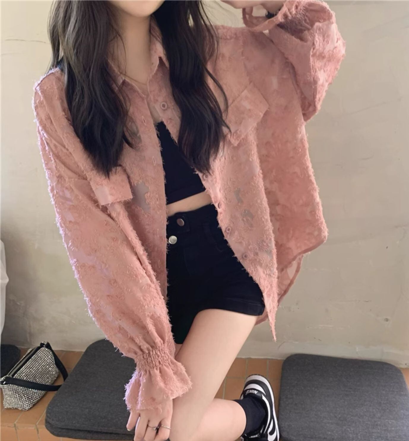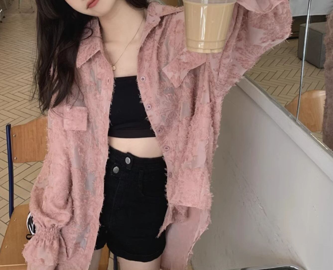 花柄レース シアー シャツ ブラウス レディース トップス 羽織 丈長 長袖 フレアスリーブ ドロップショルダー 襟付き 角襟 ポロカラー レース ポケット 前開き 透け感 シースルー ボタン かわいい 大人可愛い きれいめ シンプル カジュアル 上品 おしゃれ ルーズ 個性的 存在感 花柄 フラワー 春 夏 秋 ママ 通勤 学生 学校 通学 デート お出かけ 旅行 公園 女子会 休日 ショッピング お花見 重ね着 韓国 体型カバー 普段使い 着回し S M L XL ゆったり ピンク アプリコット