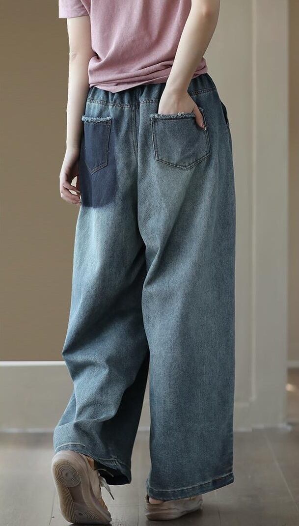 人目を引くおしゃれ感を叶えるウエストゴム ワイド デニムパンツで、あなたも魅力的なスタイリングを楽しんでください。