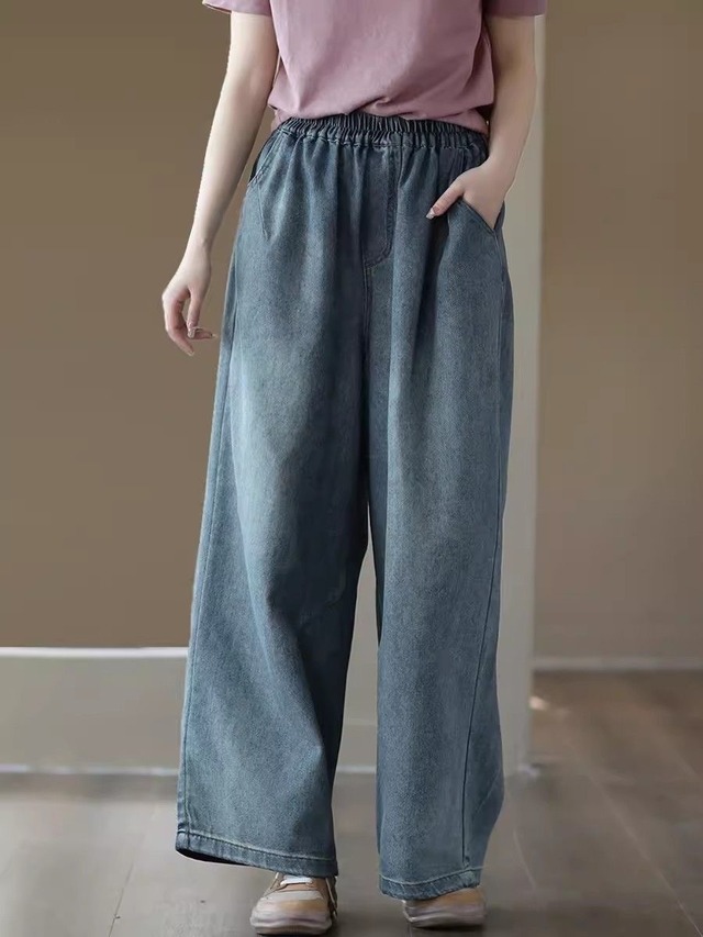 ウエストゴム ワイド デニムパンツ レディース パンツ ボトムス Gパン ロングパンツ ワイドパンツ ロング ワイド ストレート ポケット ハイウエスト 伸縮性 デニム ブルーデニム かわいい 大人可愛い シンプル カジュアル おしゃれ レトロ こなれ感 ルーズ 無地 春 夏 秋 冬 ママ 通勤 学生 学校 通学 デート お出かけ 旅行 公園 女子会 休日 ショッピング カフェ 楽ちん 体型カバー 普段使い 着回し 定番 M L XL 2XL 大きいサイズ ゆったり ブルー