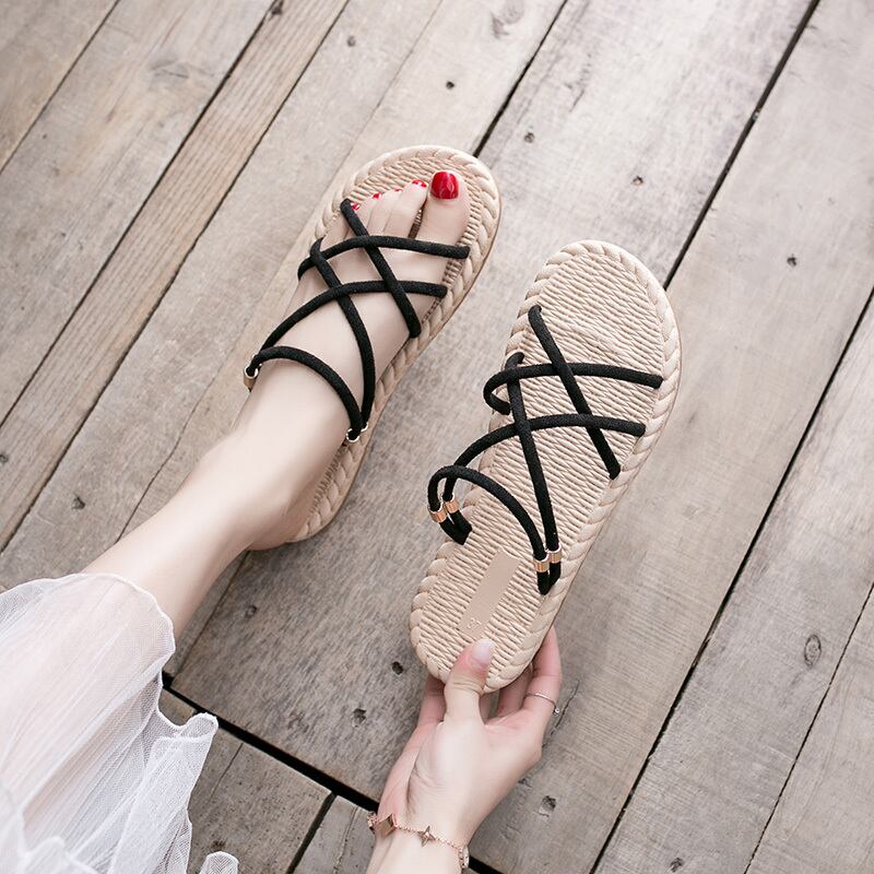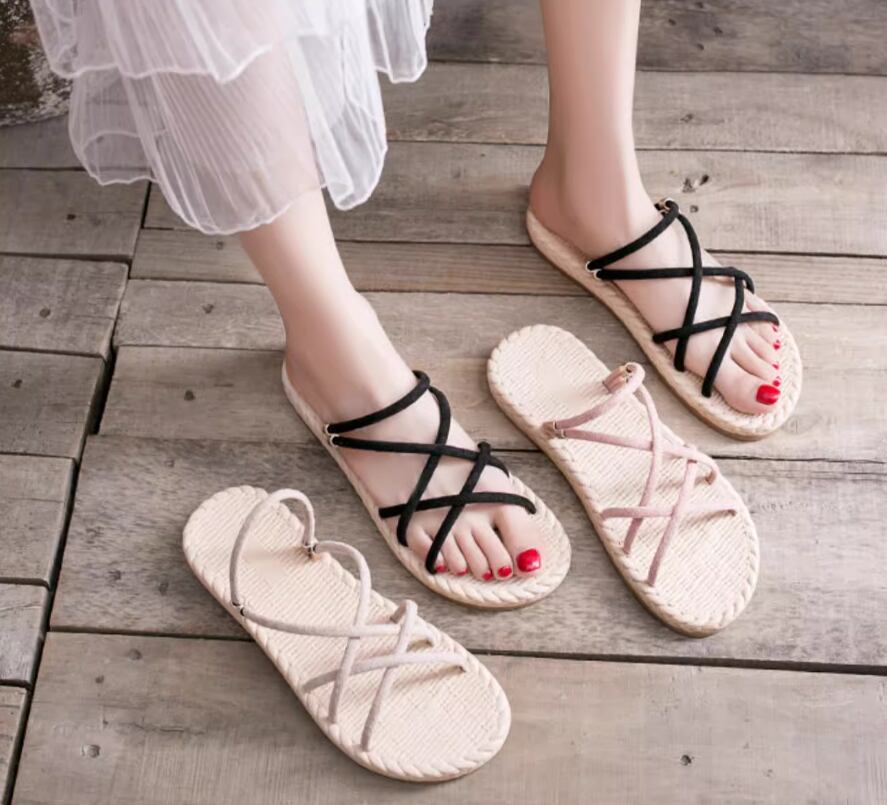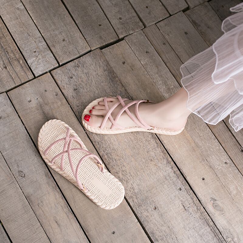 ストロー編み ぺたんこ クロスストラップ サンダル レディース ストラップサンダル ローヒール フラット 2cm ラウンドトゥ 2way かわいい 大人可愛い シンプル カジュアル おしゃれ 編み込み 春 夏 通勤 通学 デート お出かけ 旅行 公園 休日 普段使い 韓国 22.5cm 23.0cm 23.5cm 24.0cm 24.5cm 25.0cm 大きい 黒 ピンク ベージュ