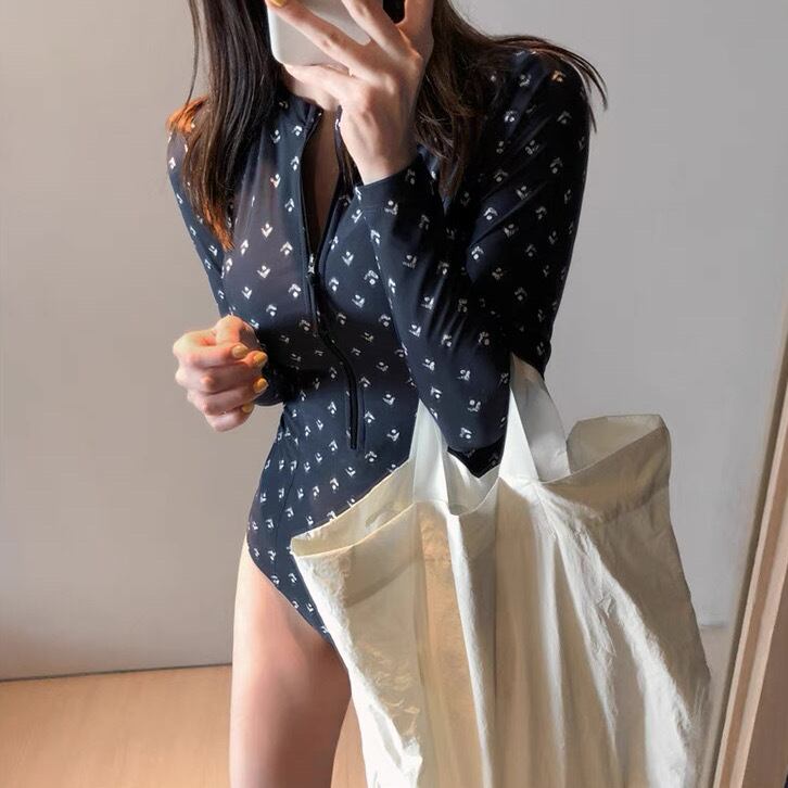 レディース 水着 スイムウェア ワンピース フィットネス 体型カバー ハイネック パッド付き 二の腕カバー 長袖 ジッパー ジップ ファスナー ジップアップ 大人可愛い きれいめ シンプル カジュアル 大人っぽい おしゃれ お洒落 レトロ 個性的 クール スタイリッシュ かっこいい コンサバ 総柄 プリント リゾート 旅行 温泉 プール 夏 海 ビーチ 海外 美脚 脚長 着痩せ スタイルアップ 韓国 日除け ママ 母 コーデ コーディネート スタイル サイズ M L XL スリム ブラック 黒 モノトーン