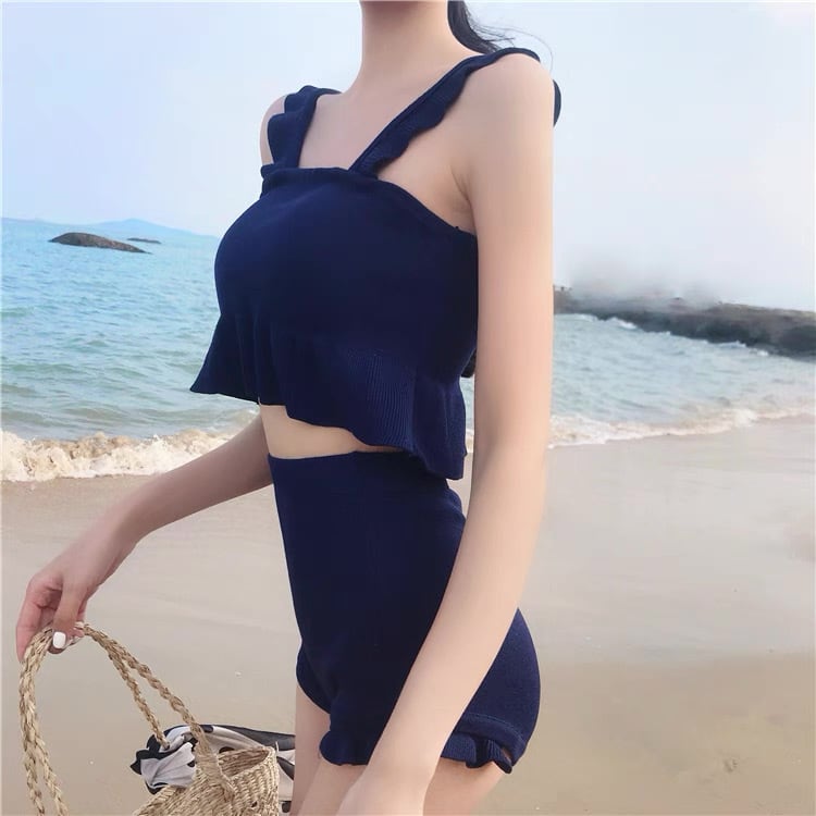レディース 水着 ビキニ スイムウェア タンキニ 体型カバー ショートパンツ セパレート ビスチェ パッド付き フリル ハイウエスト 伸縮性 リブ セット 上下セット かわいい 大人可愛い きれいめ シンプル カジュアル 大人っぽい おしゃれ お洒落 レトロ ガーリー フェミニン ヘルシー クラシカル 無地 リゾート 旅行 温泉 プール 夏 海 ビーチ 海外 水遊び 美脚 脚長 スタイルアップ 韓国 スタイルカバー こなれ感 スタイル コーディネート M L XL ブラック 黒 ネイビー コーヒー 茶色