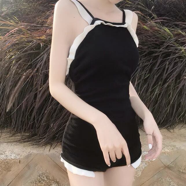 レディース 水着 スイムウェア ワンピース 体型カバー パッド付き バックレス ノースリーブ フリル 伸縮性 かわいい 大人可愛い きれいめ シンプル 大人っぽい おしゃれ お洒落 レトロ ガーリー フェミニン クラシカル 無地 リゾート 旅行 温泉 プール 夏 海 ビーチ 海外 水遊び 美脚 脚長 着痩せ スタイルアップ 韓国 高見え モテ 背中見せ こなれ感 SNS映え スタイル コーディネート サイズ展開 S M L XL スリム ブラック 黒 バイカラー モノトーン ネイビー 配色 大人カラー