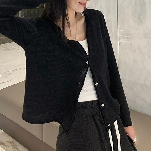 ニットカーディガン カーディガン レディース 長袖 Vネック ボタン 前開き スリム 細身 きれいめ 上品 おしゃれ お洒落 大人可愛い 大人女子 かっこいい カジュアル 個性的 フェミニン クール セクシー モダン エレガント レトロ 主役級 存在感 こなれ感 抜け感 春 秋 10代 20代 30代 OL 通勤 お出かけ デート 女子会 お泊まり 旅行 ショッピング 普段使い 韓国 オルチャン ファッション コーデ トレンド 流行 スタイル インスタ映え M L アプリコット ブルー グレー ブラック