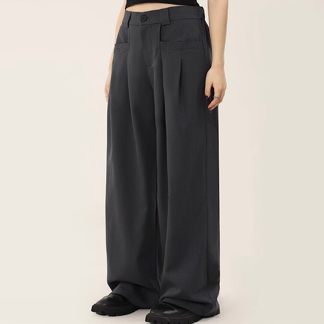レディース パンツ ボトムス ストレートパンツ ロングパンツ ワイドパンツ タックパンツ ロング 丈長 ワイド ストレート Iライン タック ポケット ハイウエスト きれいめ シンプル カジュアル 上品 おしゃれ かっこいい こなれ感 ラフ メンズライク マニッシュ ボーイッシュ ルーズ 個性的 クール モード系 クラシカル 無地 春 秋 学生 通学 お出かけ 女子会 ショッピング カフェ 韓国 コーデ 脚長 普段使い 着回し トレンド 流行 定番 S M L ゆったり ゆる ダークグレー モノトーン
