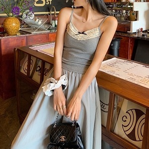 シンプルなデザインにレースとリボンがアクセントをプラスしたキャミソール。ノースリーブで軽やかな着心地ながら、上品な印象を演出してくれる一枚です。サスペンダーストラップで肩細く見せてくれる効果もあり、スリムなシルエットを叶えます。様々なシーンで活躍する上品さと可愛らしさを兼ね備えたアイテムです。