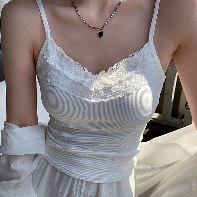 キャミソール レディース トップス ノースリーブ サスペンダー インナー レース リボン プルオーバー 無地 スリム 細身 きれいめ 上品 おしゃれ お洒落 大人可愛い 大人女子 かっこいい シンプル キュート セクシー エレガント 主役級 存在感 こなれ感 夏 10代 20代 30代 40代 お出かけ デート 女子会 休日 お泊まり 旅行 ショッピング 普段使い デイリー 韓国 韓国系 重ね着 オルチャン ファッション コーデ トレンド 流行 ワンサイズ ホワイト アプリコット グレー ブラック