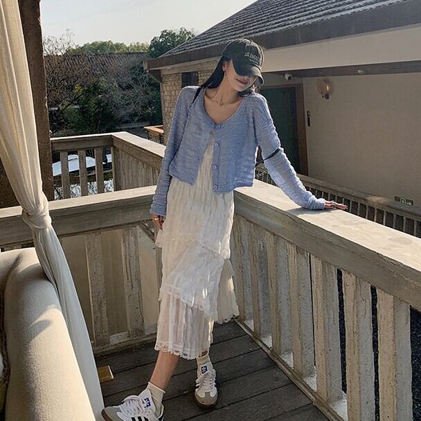 立体感のあるボーダー柄調の編地がおしゃれなクロップドカーディガンです。ほのかな透け感があるややシアーな素材感で、羽織りアイテムとしてもレイヤード用にも便利。ショート丈で腰周りがすっきり見えるので、脚長効果抜群です。