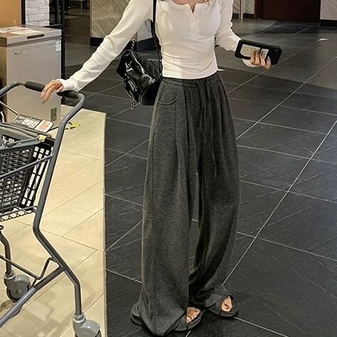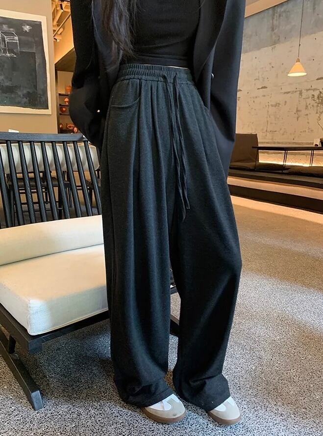 カジュアルパンツ レディース パンツ ストレートパンツ ワイドレッグパンツ ウエストゴム ハイウエスト ルーズ きれいめ 上品 おしゃれ お洒落 大人可愛い 大人女子 かっこいい シンプル クール モダン スポーティー レトロ 主役級 存在感 こなれ感 抜け感 春 秋 10代 20代 30代 40代 お出かけ デート 女子会 スポーツ 運動 お泊まり 旅行 休日 普段使い デイリー 韓国 韓国系 オルチャン 美脚 脚長 ファッション コーデ トレンド 流行 スタイルアップ 楽チン M L グレー ブラック