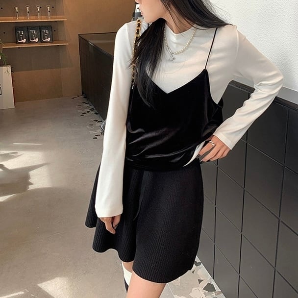 ビスチェ キャミソール レディース トップス ノースリーブ ショート丈 ベルベット Vネック サスペンダー プルオーバー 無地 スリム 細身 きれいめ 上品 おしゃれ お洒落 大人可愛い 大人女子 かっこいい シンプル キュート セクシー エレガント 主役級 存在感 こなれ感 冬 10代 20代 30代 お出かけ デート 女子会 休日 お泊まり 旅行 ショッピング 普段使い デイリー 韓国 韓国系 重ね着 オルチャン ファッション コーデ トレンド インスタ映え スタイル 流行 M L 黒 ブラック