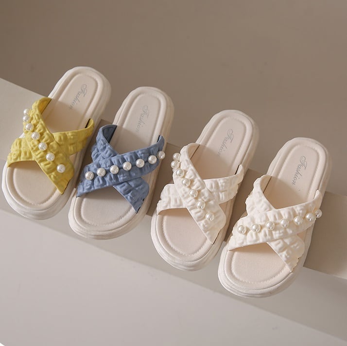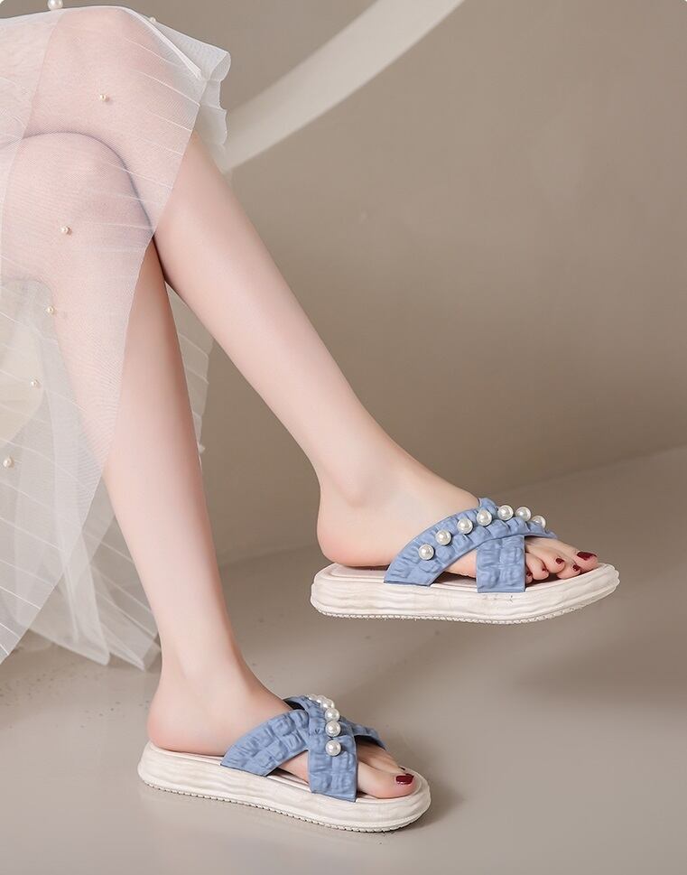 パール付き クロス ビーチサンダル レディース サンダル 3cm ローヒール フラット ラウンドトゥ パール 柔らかい 美脚 防水 PVC かわいい 大人可愛い カジュアル 上品 おしゃれ キュート ガーリー 主役級 存在感 華やか 無地 春 夏 通勤 通学 デート お出かけ リゾート 旅行 海 プール 海外 休日 普段使い 格上げ 22.5cm 23.0-23.5cm 24.0-24.5cm 25.0-25.5cm 青 黄色 イエロー ブルー オフホワイト